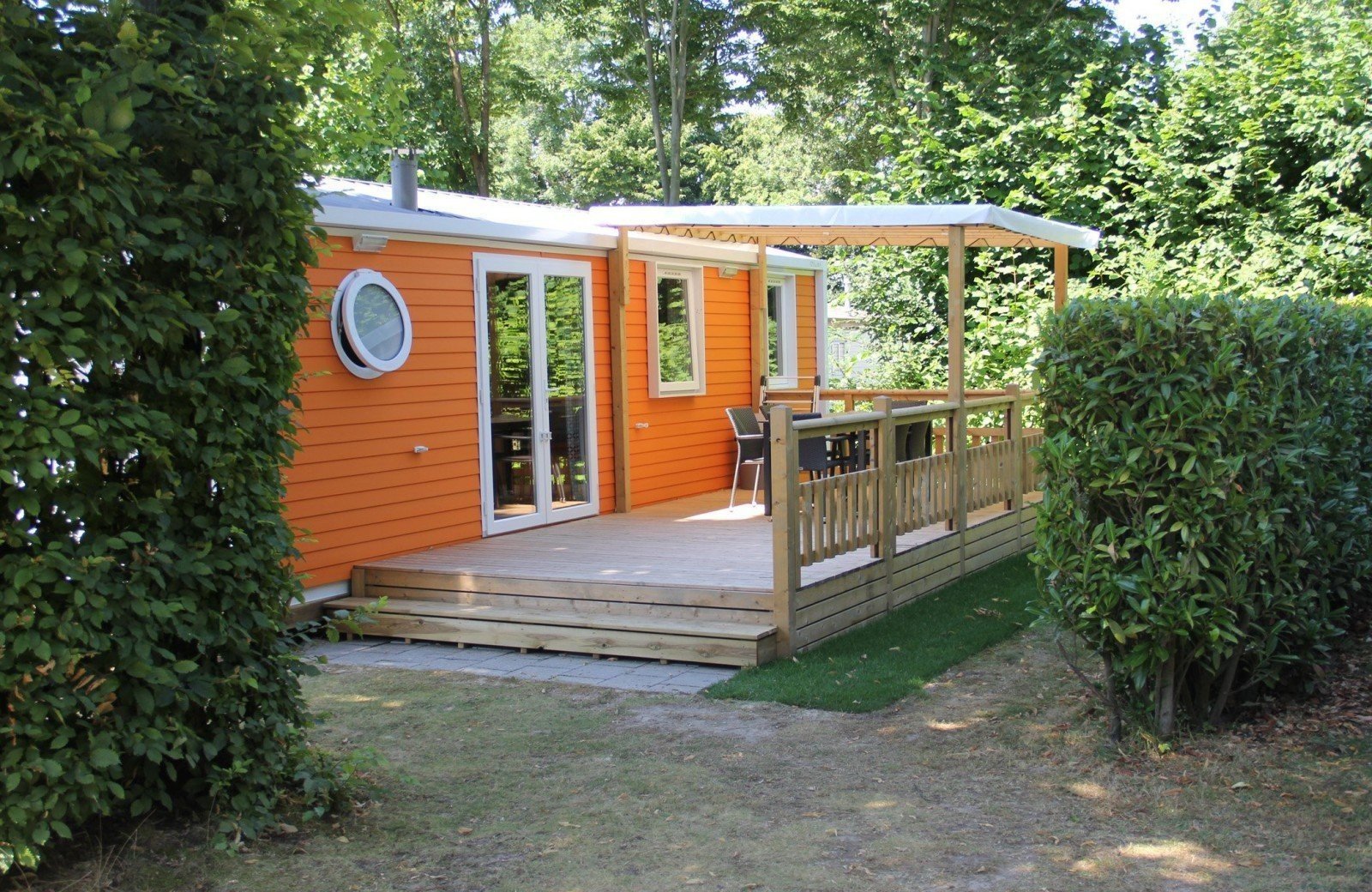 Unsere Chalets verfügen über eine voll ausgestattete Küche und gemütliche Terrasse für gemeinsame Stunden draußen. Ausreichend Platz und mit Gartenmöbeln ausgestattet, sind diese Unterkünfte perfekt für einen Familienurlaub im Sommer.