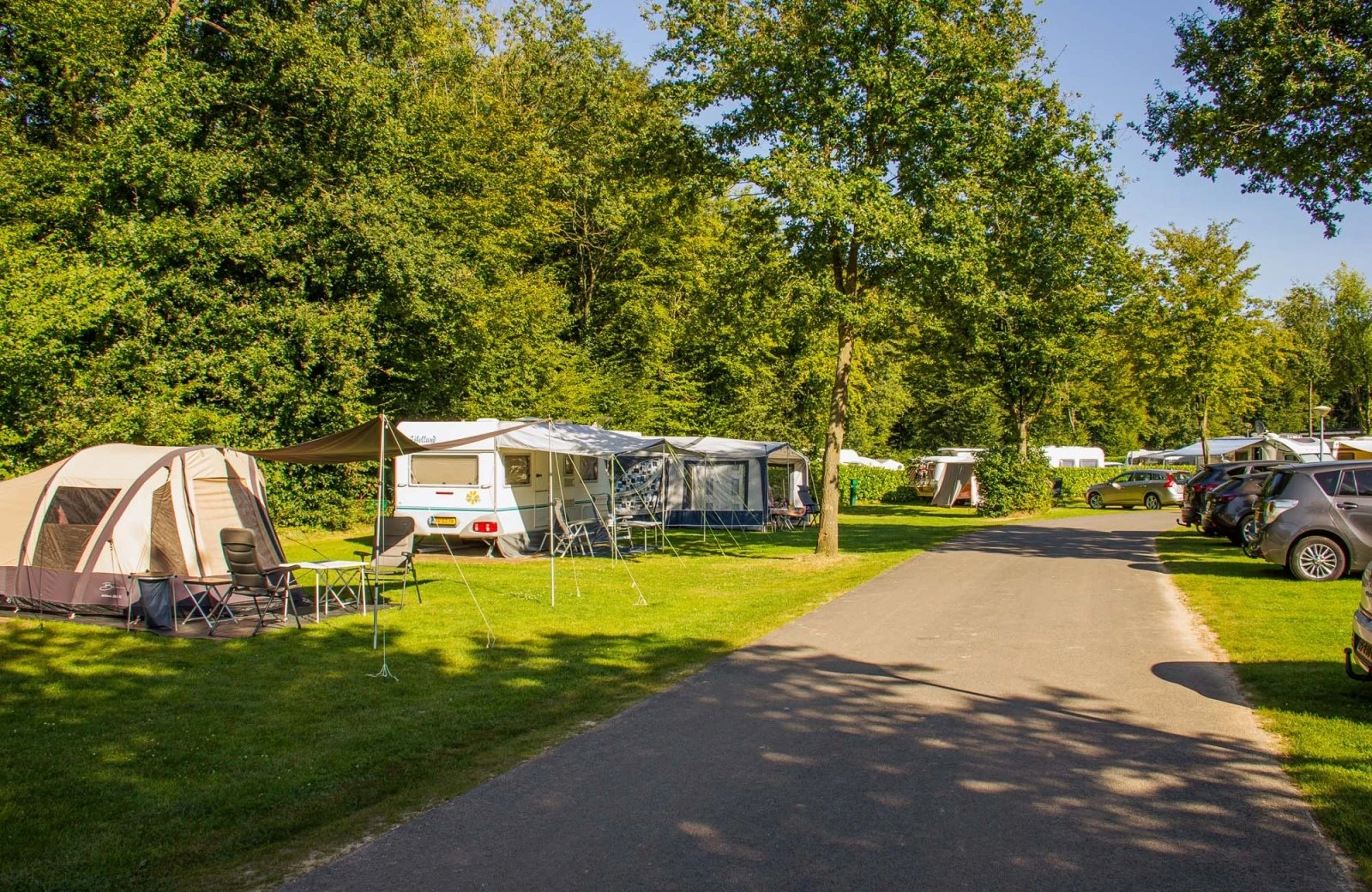 Entdecken Sie den Genuss des Campings auf unseren Komfortstellplätzen! Alle Komfortstellplätze sind zwischen 100 m² und 150 m² groß und liegen verteilt über den Campingplatz auf gemütlichen Feldern oder an einer kleinen Allee. Es gibt Stellplätze in der Nähe des Schwimmbads oder etwas abgeschirmter in der Nähe des Sanitärgebäudes und des Spielplatzes.
