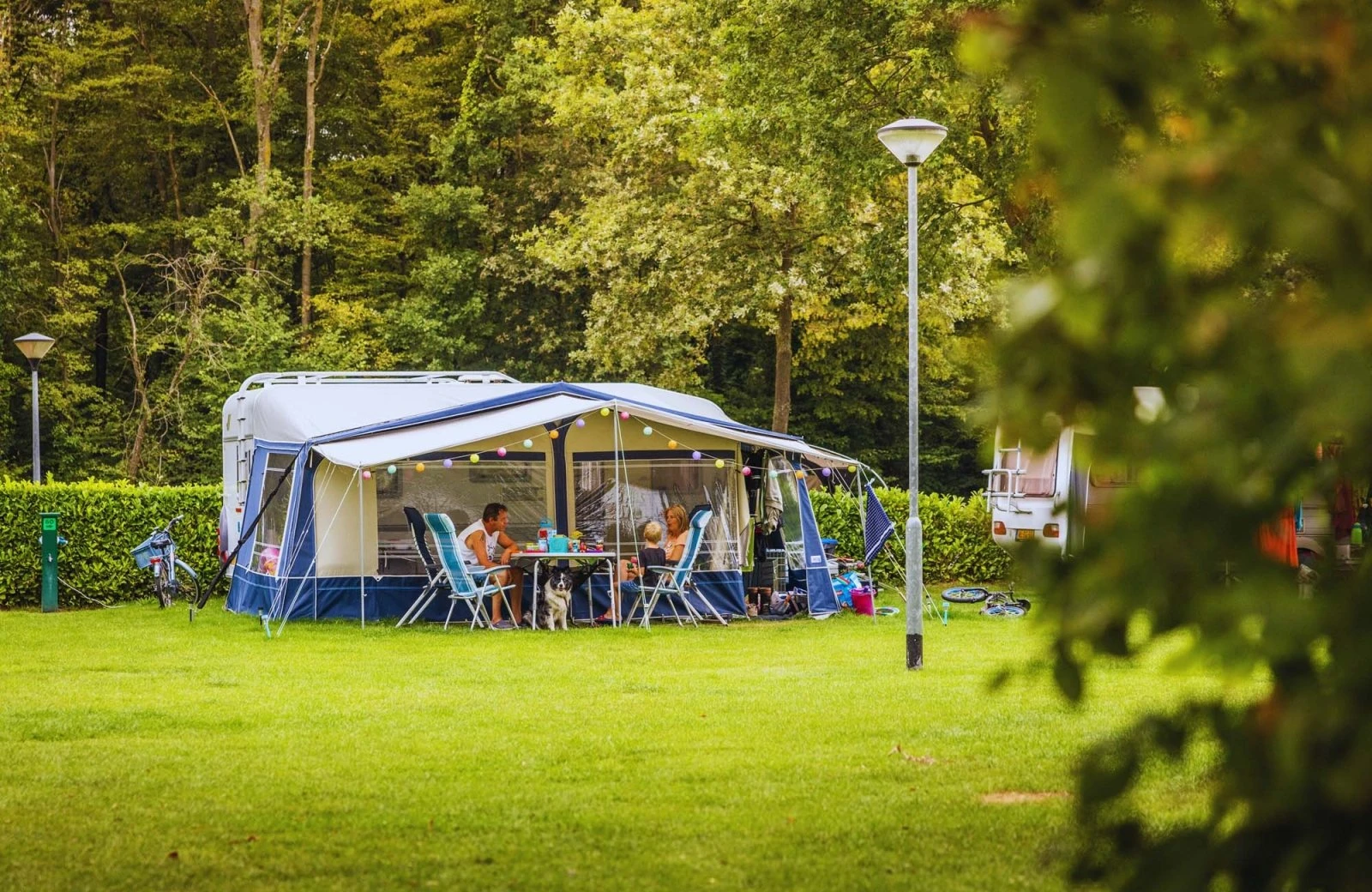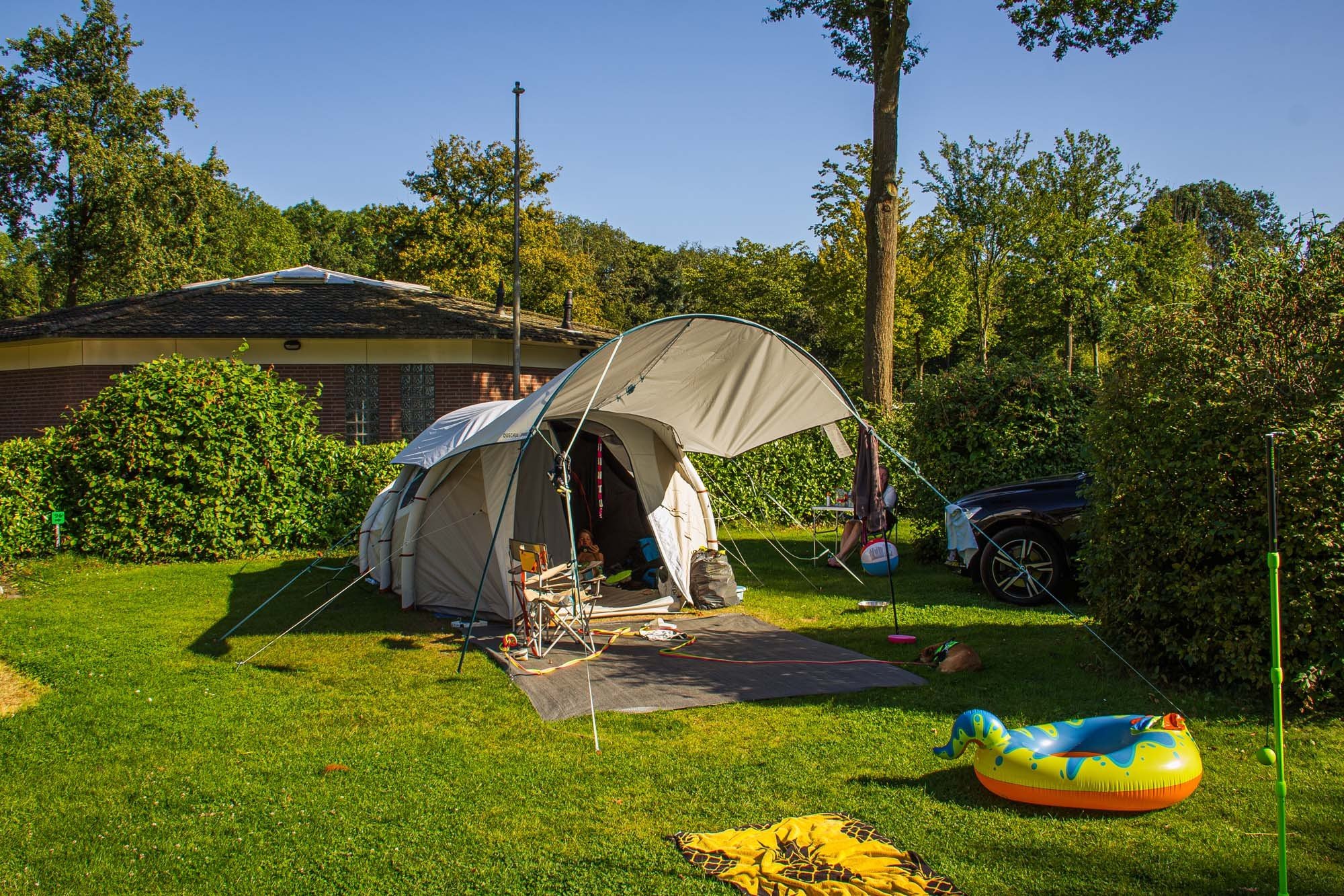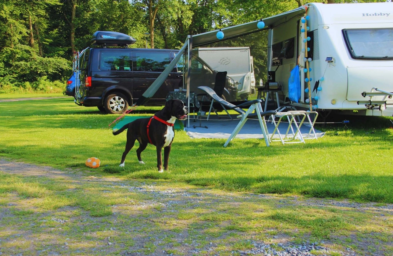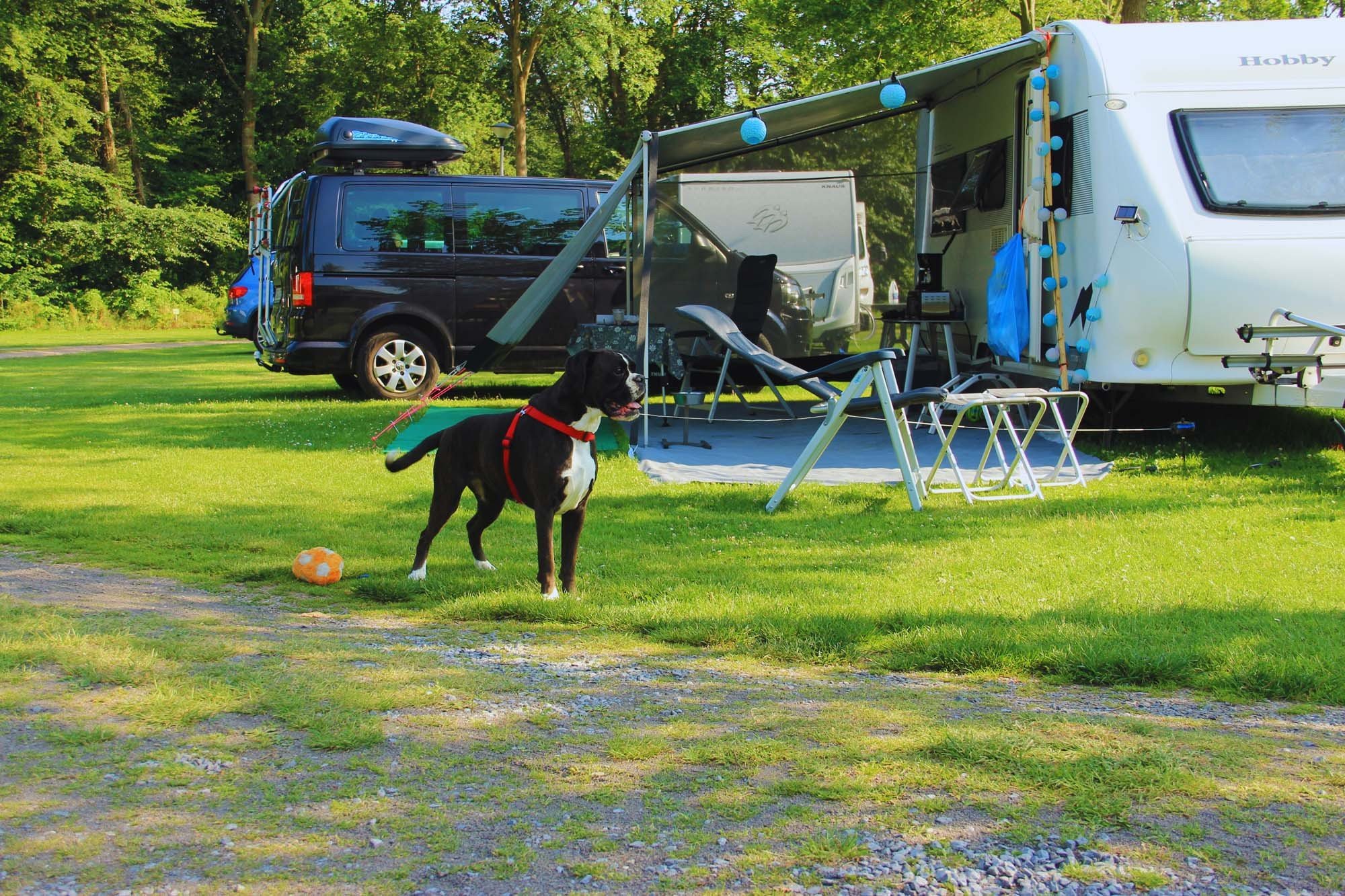 Auf unserem Campingplatz sind Haustiere willkommen, aber für diejenigen, die eine haustierfreie Umgebung bevorzugen, stehen die Plätze 110 bis 116 in der Nähe des Sportplatzes und des Sanitärgebäudes zur Verfügung.