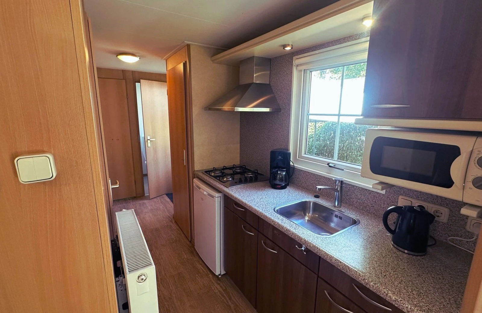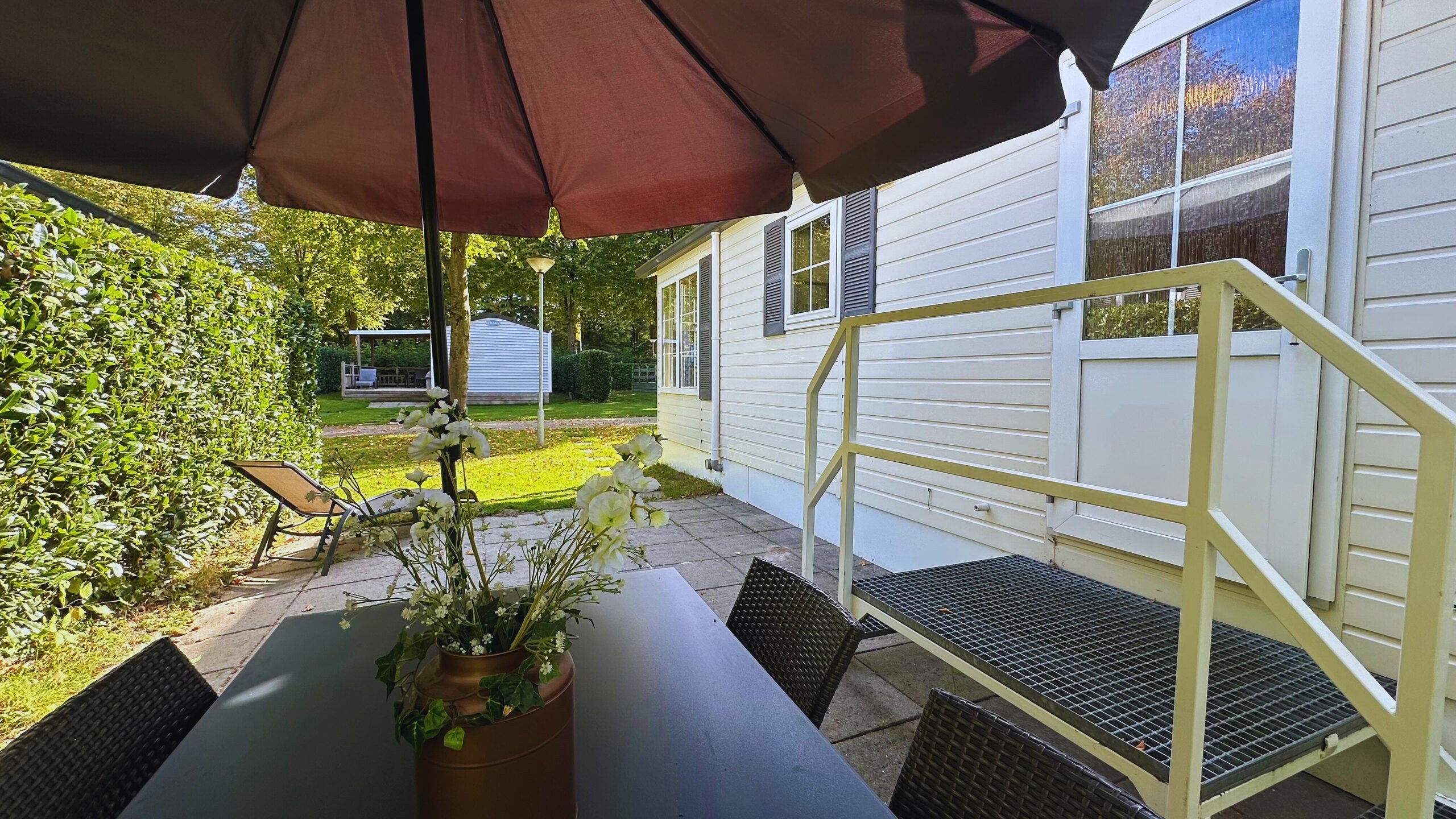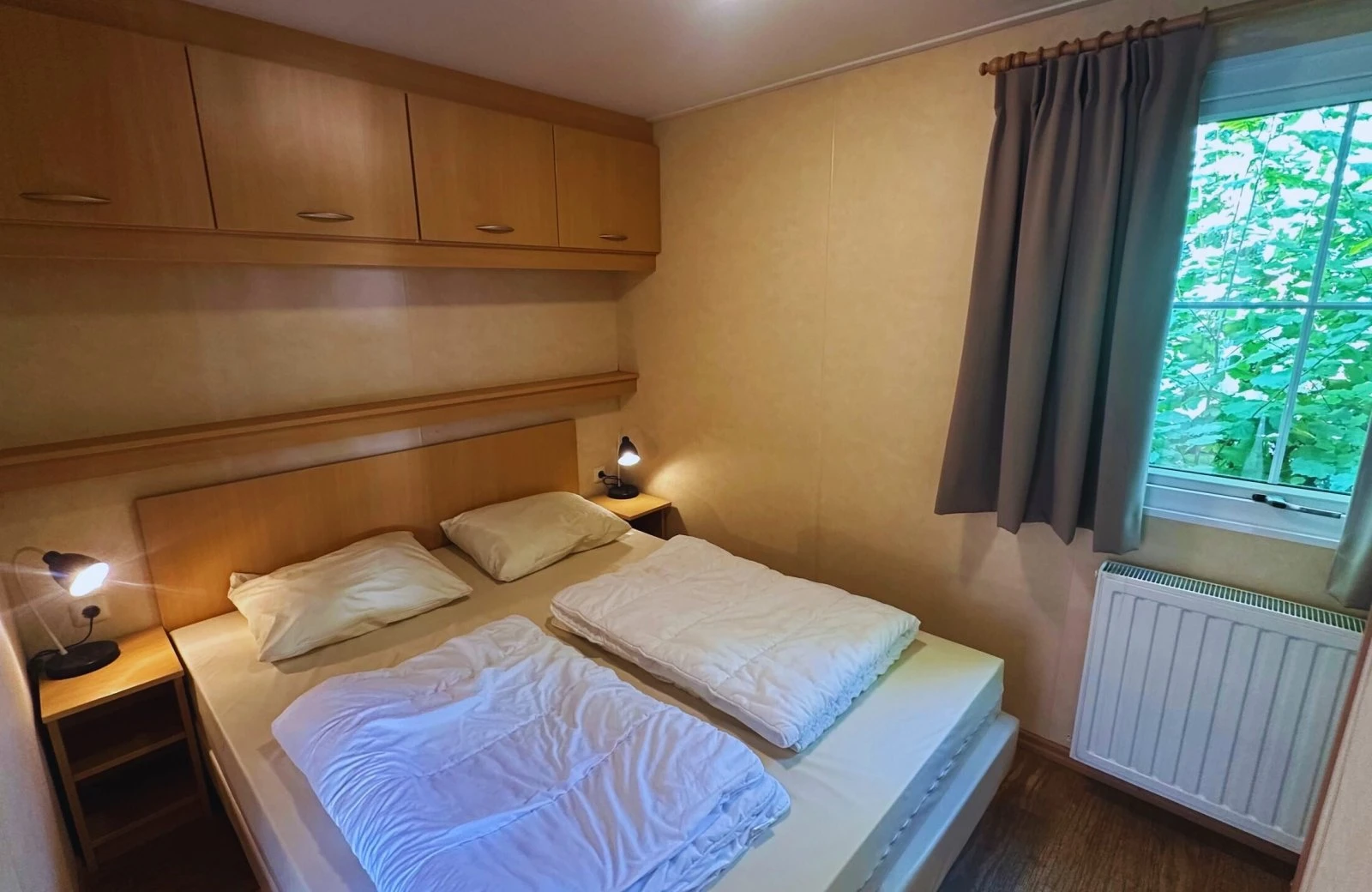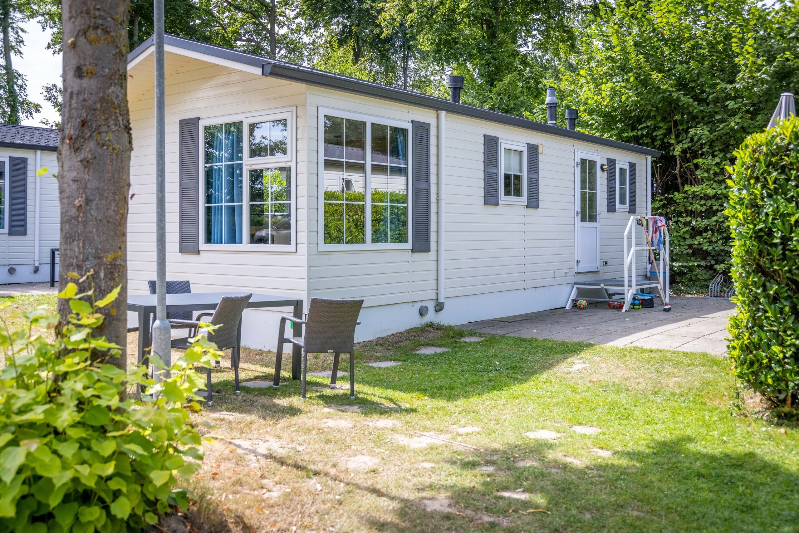 Chalet Typ D für 4 Personen ist gemütlich und hat ein schönes Licht wegen der großen Fenster. Auf der großzügigen Terrasse können Sie die Sonne und den Blick ins Grüne genießen.