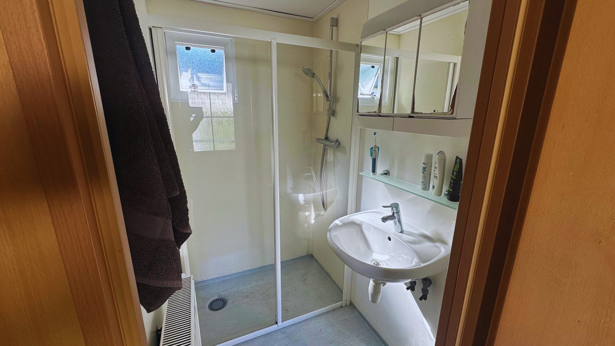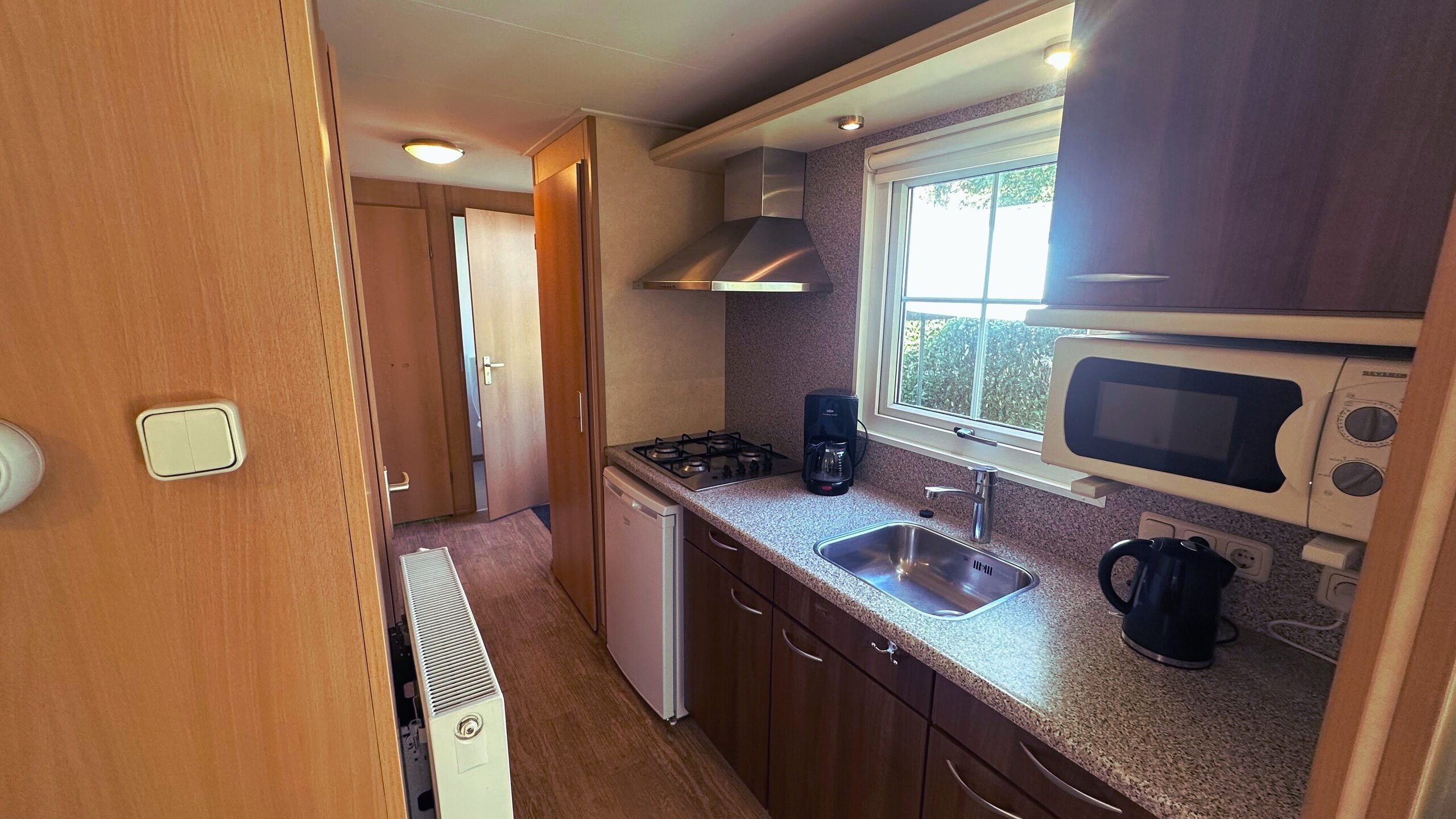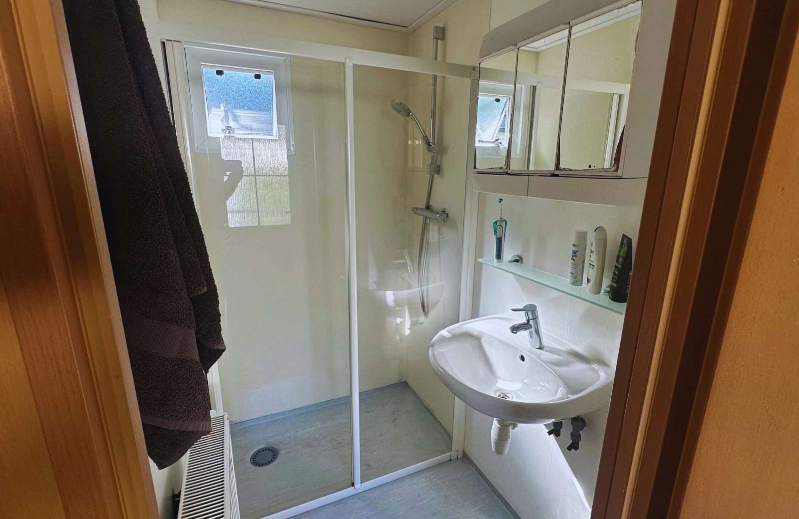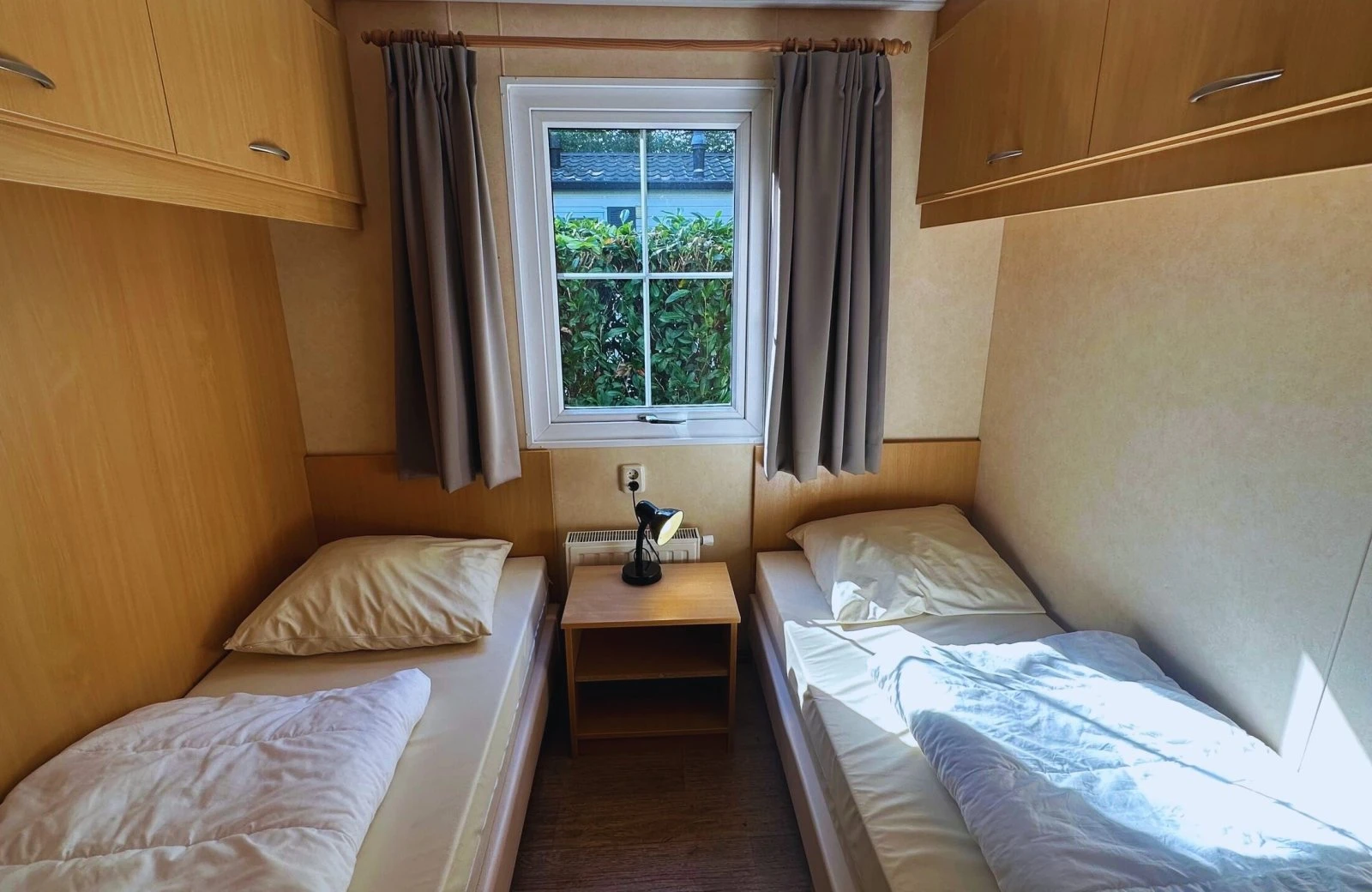Chalet Typ D für 4 Personen ist gemütlich und hat ein schönes Licht wegen der großen Fenster. Auf der großzügigen Terrasse können Sie die Sonne und den Blick ins Grüne genießen.