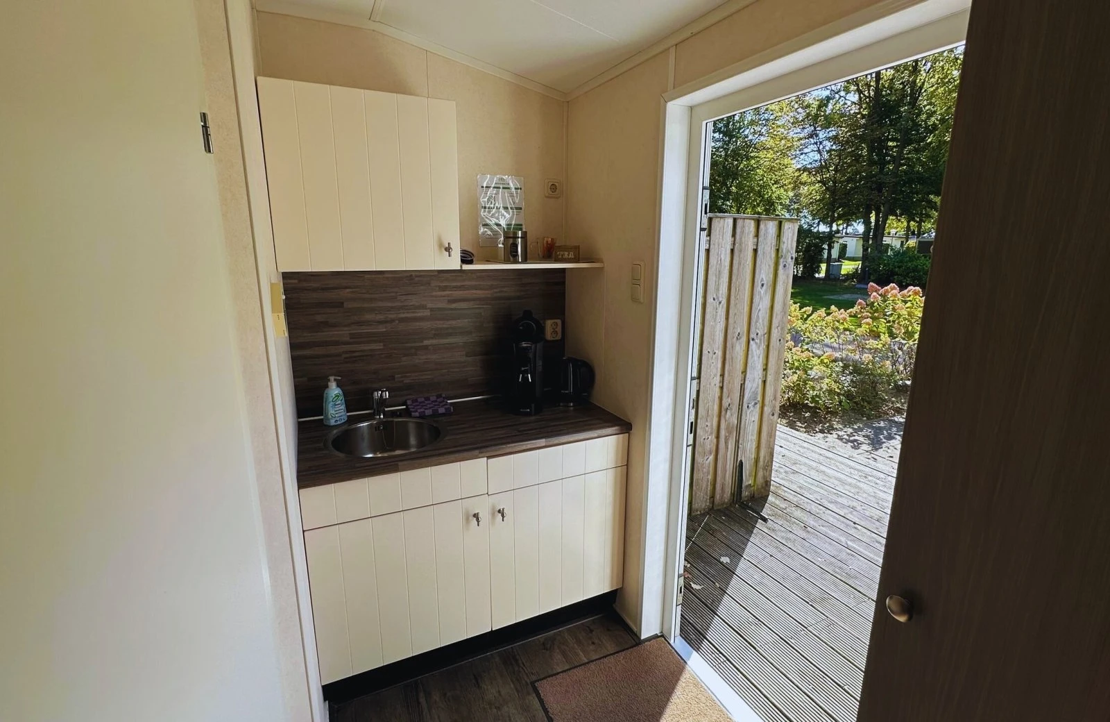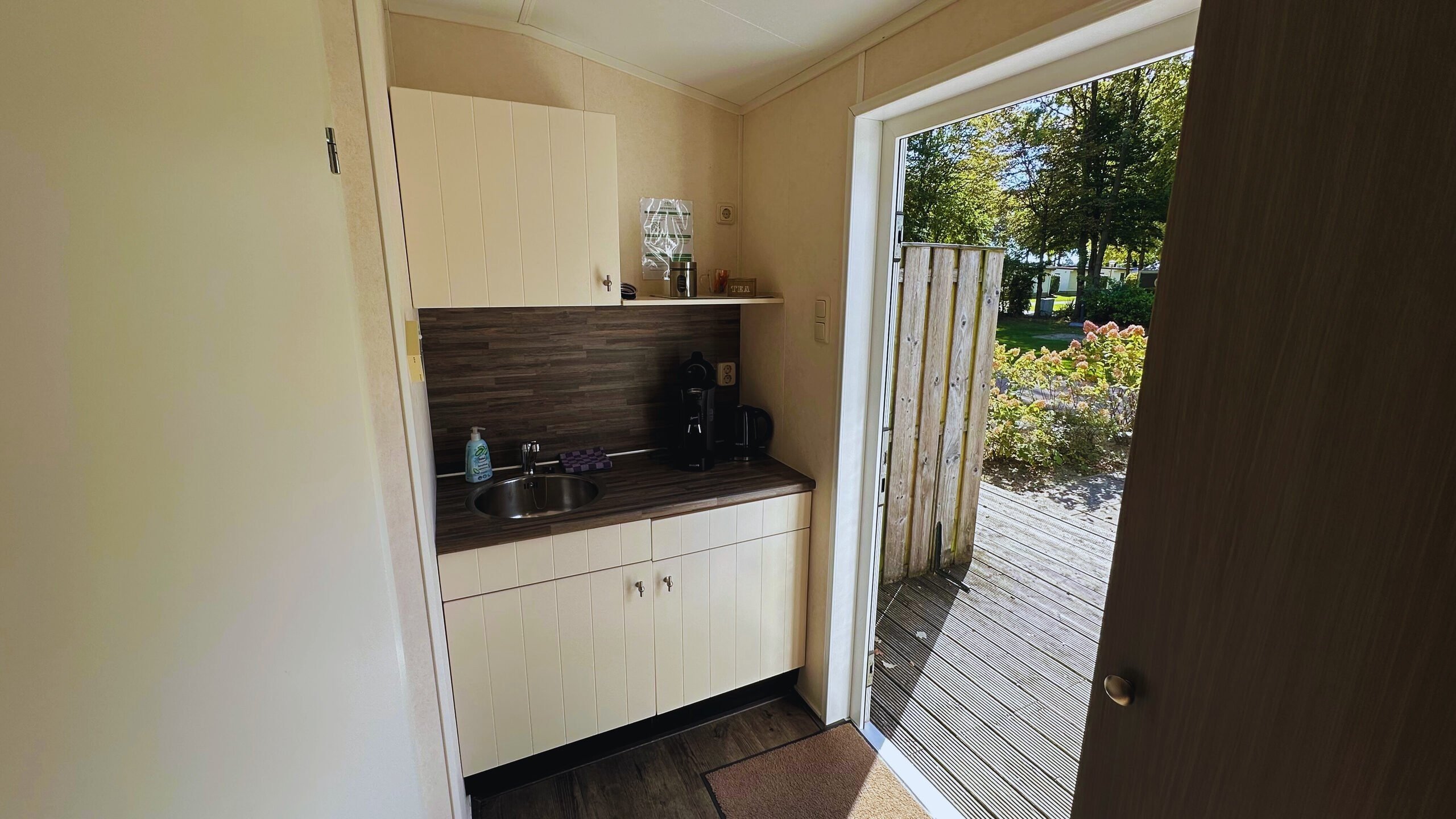 - Kleine Küchenzeile mit Kühlschrank und Wasserkocher