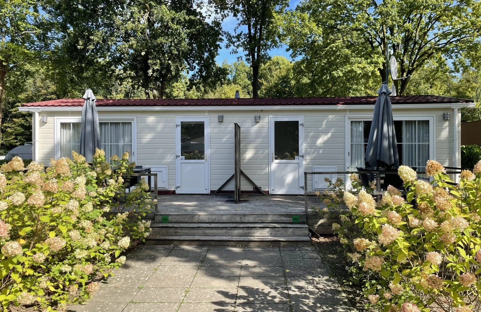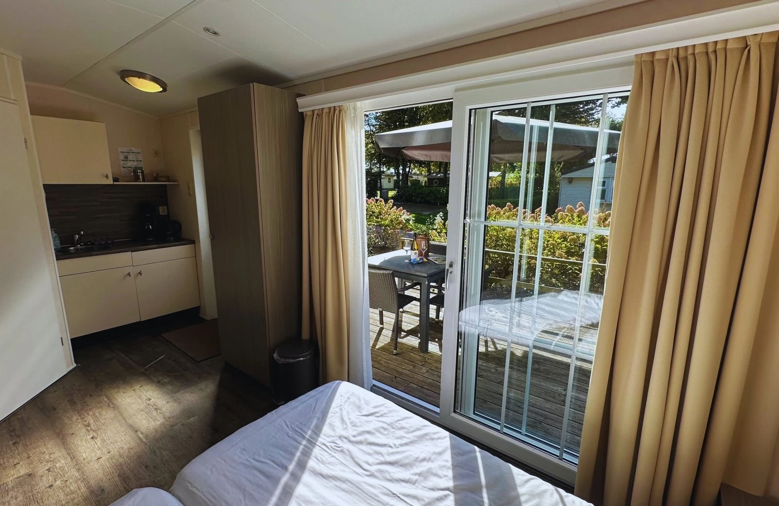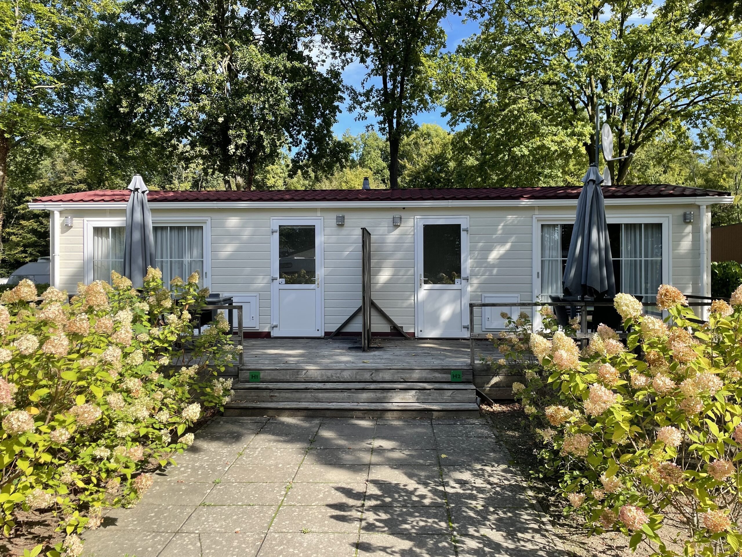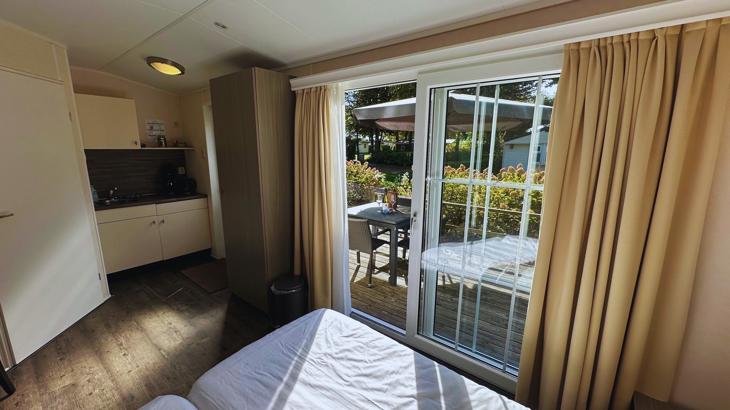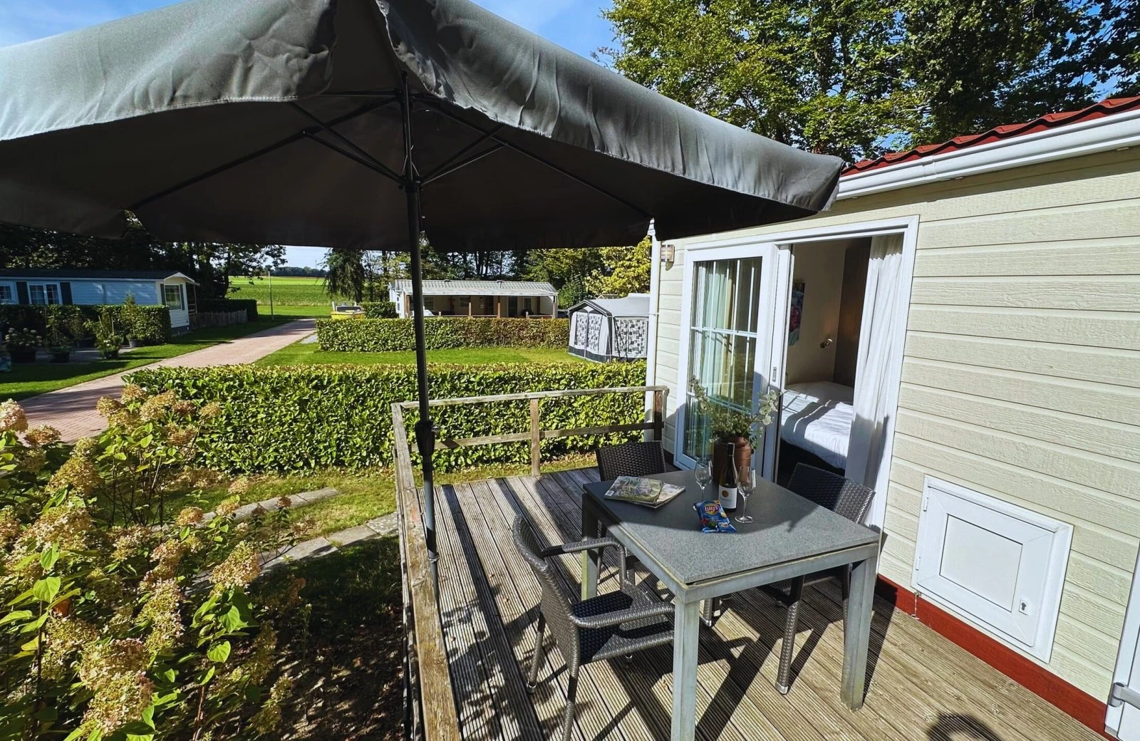Unsere gemütlich eingerichteten Hotelchalets sind für 1 - 3 Personen geeignet. Die beiden Zimmer haben beide einen eigenen Eingang und teilen sich eine schöne Holzveranda. Frühstücken Sie, während Sie den Sonnenaufgang über Landgraaf beobachten oder genießen Sie einen Drink und einen Snack am Abend.