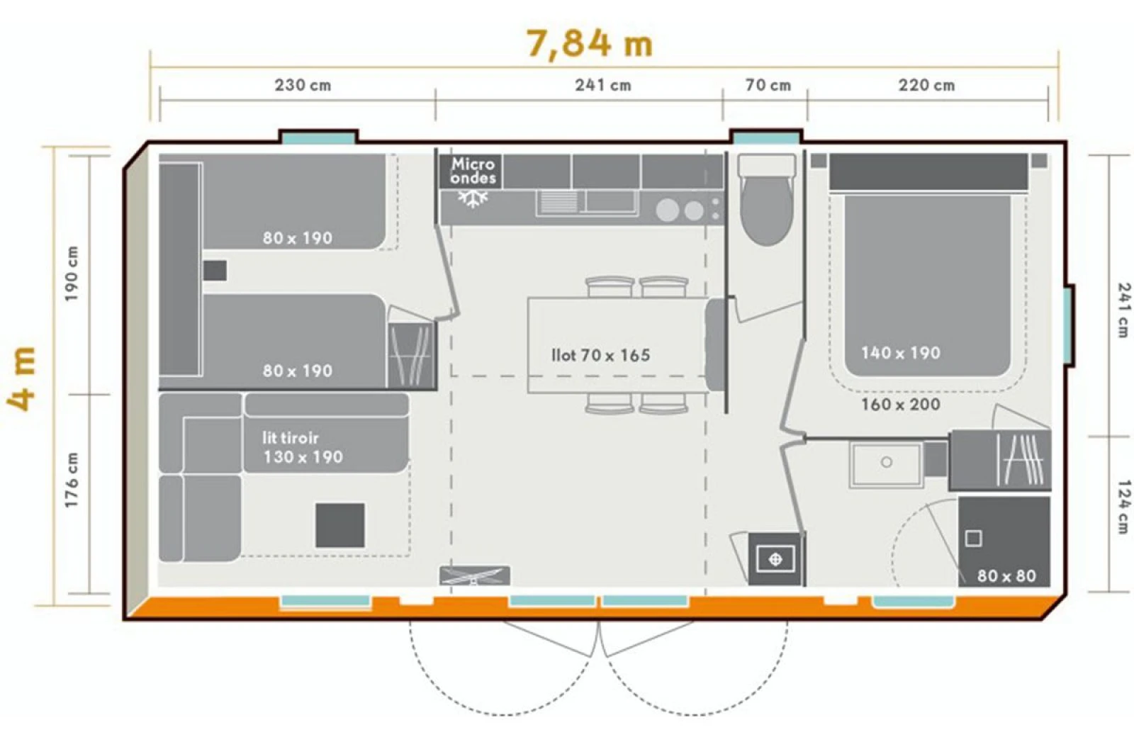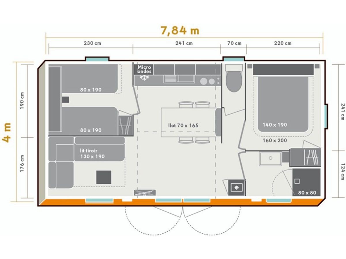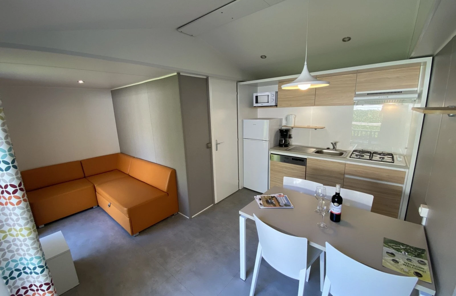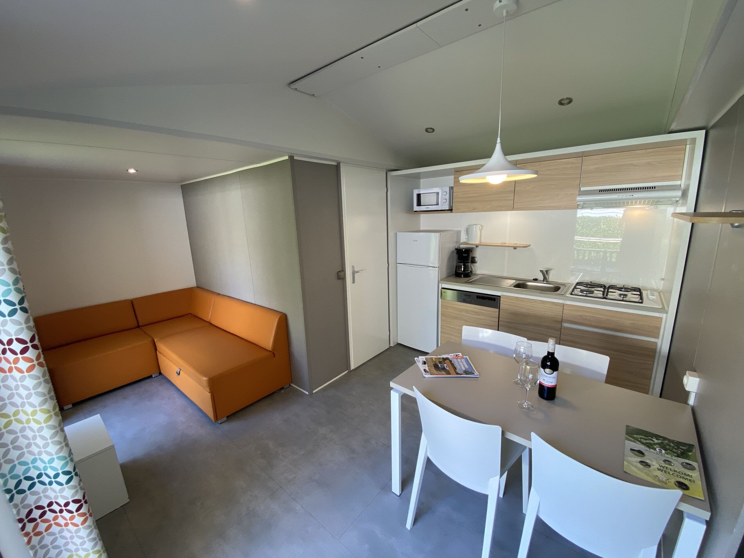 In der Veranda-Lodge für 4 Personen werden Sie viel Urlaubsspaß haben. Genießen Sie die waldreiche Umgebung und die tollen Einrichtungen auf unserem Campingplatz.